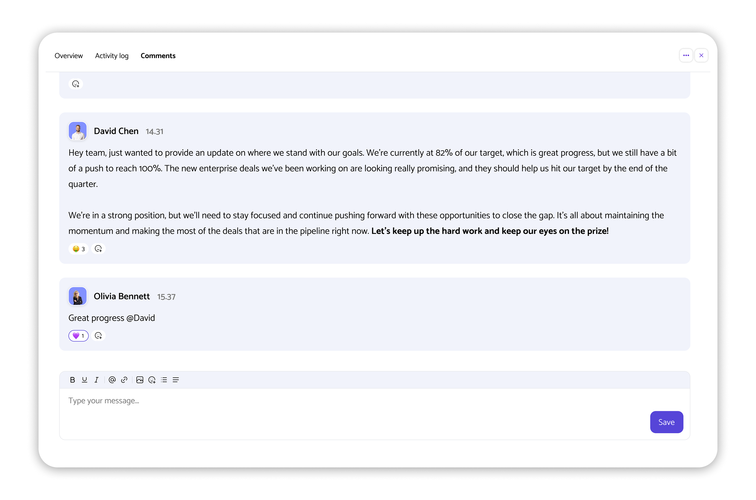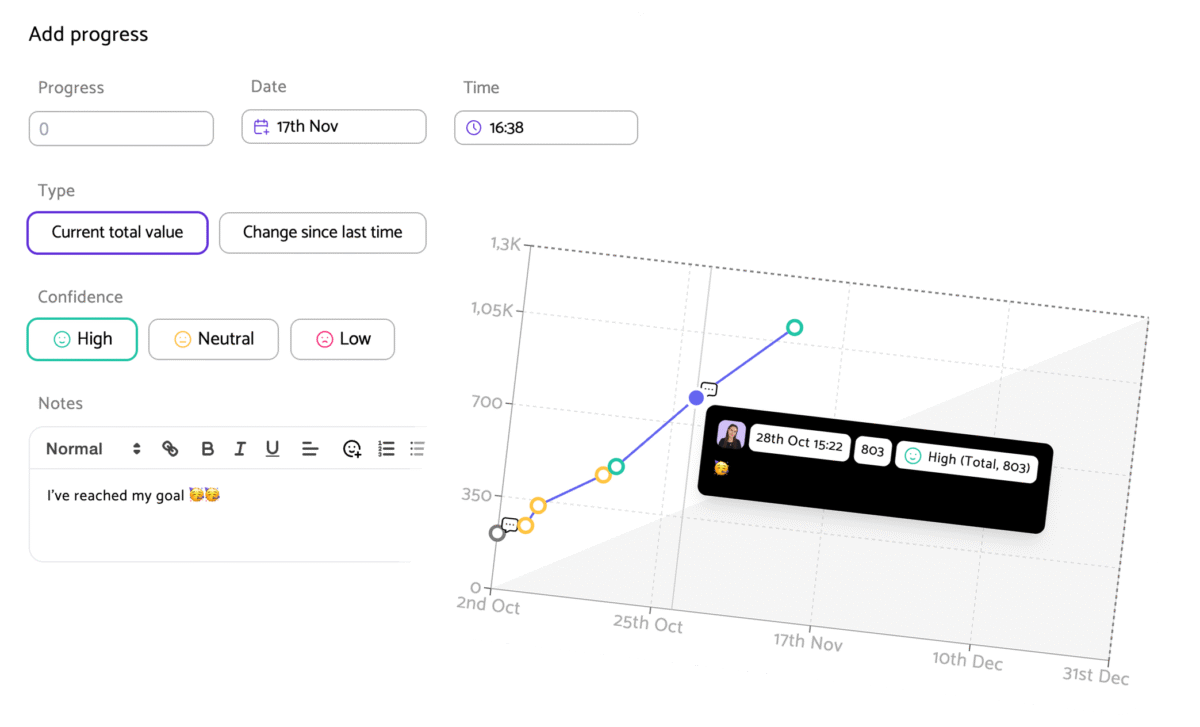 Chat with AI for instant, personalized support and actionable insights to keep your goals on track and your team aligned.